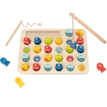 Cu jocul de pescuit din lemn de la marca renumită Tooky Toy, copilul tău își poate îmbunătăți reflexele și concentrarea în mod distractiv. Fiecare peștișor este marcat cu o literă, ceea ce ajută la învățarea alfabetului. Setul include două undițe magnetice pentru prinderea peștilor, realizate din materiale de calitate.