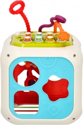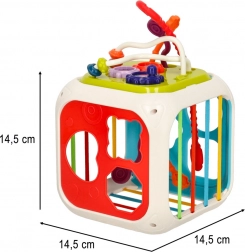 Cubul oferă o mulțime de activități care susțin dezvoltarea senzorială și coordonarea ochi-mână.