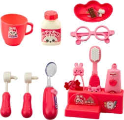 - Set de instrumente stomatologice realiste: periuț03 de dinți, oglind03, sfredel, seringe6, can03 și flacon cu „medicament”