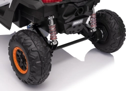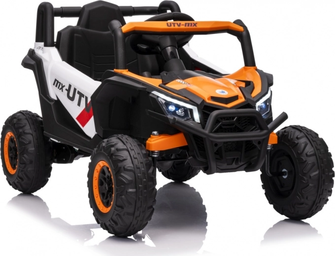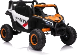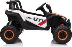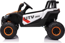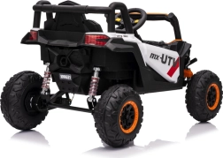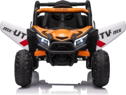 Vehiculul electric Buggy Madman UTV-MX este echipat cu patru motoare puternice de 35W fiecare și alimentat de o baterie 12V10Ah. Controlul este asigurat prin intermediul unei telecomenzi foarte stabile în frecvență de 2,4 GHz, care oferă opțiunea de a alege dintre trei viteze și permite activarea butonului de siguranță Stop.