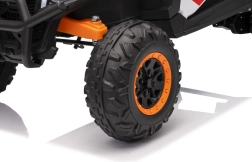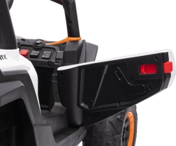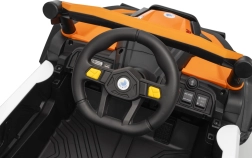 În cadrul dotărilor suplimentare veți găsi un panou audio cu Bluetooth, intrare USB și funcție MP3, care asigură distracția în timpul călătoriei. Scaunele din piele ecologică sunt echipate cu centuri de siguranță, iar dimensiunile scaunului de 37x19x24 cm asigură confortul. Vehiculul este prevăzut și cu uși practice care se deschid și o capacitate maximă de încărcare de 30 kg.
