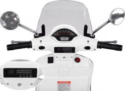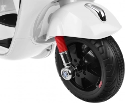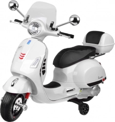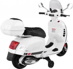 Aspectul iconic VESPA, redus la scară pentru copii. Modelul oferă șa confortabilă, rotițe de stabilizare pentru începuturi sigure și o execuție precisă cu atenție la detalii. Două motoare de 12 V (30 W) și acumulator 2× 6 V asigură pornire lină și o deplasare plăcută.
