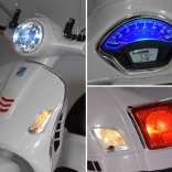 Stilata trotinetă electrică pentru copii Vespa GTS Super oferă un design clasic, o deplasare stabilă și multă distracție. Datorită motorului puternic de 12 V, rotițelor ajutătoare și detaliilor realiste precum luminile, oglinzile și parbrizul, este ideală pentru micii șoferi, atât în grădină, cât și în parc.