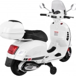 Aspectul iconic VESPA, redus la scară pentru copii. Modelul oferă șa confortabilă, rotițe de stabilizare pentru începuturi sigure și o execuție precisă cu atenție la detalii. Două motoare de 12 V (30 W) și acumulator 2× 6 V asigură pornire lină și o deplasare plăcută.