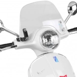 Parbrizul, oglinzile, farul și cutia din spate creează o experiență autentică, ca pe o Vespa adevărată.