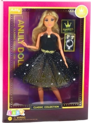 Strălucitoarea păpușă Anlily în rochie neagră este un accesoriu perfect pentru orice colecție de jocuri de copii. Copiii vor fi atrași nu doar de rochia cu curea aurie elegantă, ci și de fiecare detaliu, cum ar fi brocartul sclipitor. Părul lung și blond este ideal pentru pieptănat și stilizat, dezvoltând creativitatea și simțul estetic al copilului.