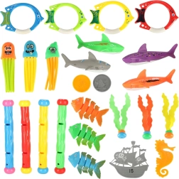 Sub apă, copiii se pot întâlni cu pești, căluți de mare și caracatițe care îi ajută să-și dezvolte abilitățile și motricitatea. Setul include și tuburi de scufundare care le permit copiilor să ridice jucăriile cu ușurință din apă. Setul este potrivit nu doar pentru joacă obișnuită, ci și pentru integrarea senzorială și dezvoltarea motricității fine.