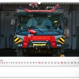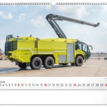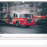 Fiecare lună a calendarului afișează fotografii unice cu mașini de pompieri, care impresionează prin dinamismul și atmosfera lor incendiară. Calendarul are un calendar universal, plasat clar pe un fundal elegant negru.