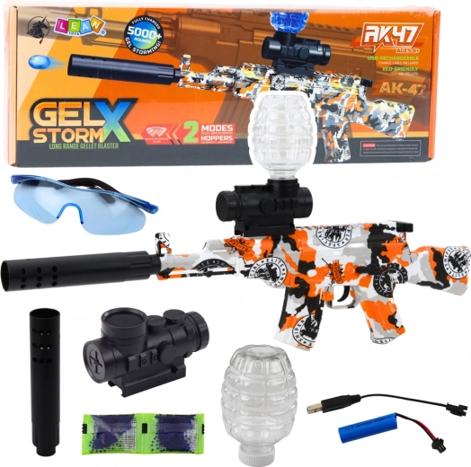 Această carabină este echipată cu încărcătoare interschimbabile pentru bile gel și vizor optic, asigurând un joc palpitant la aer liber sau acasă (cu măsurile corespunzătoare de siguranță). Datorită bateriei de 3.7V Li, jucăria oferă o utilizare confortabilă fără necesitatea schimbării bateriilor frecvente.