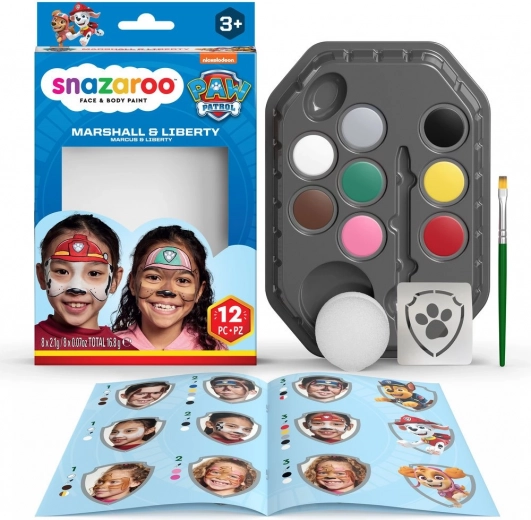 Set de culori pentru față și corp de la marca Snazaroo este special creat pentru fanii Patrulei cățelușilor. Ideal pentru petreceri de copii, carnavaluri, petreceri sau Halloween, oferă o aplicare ușoară și o compoziție sigură, potrivită chiar și pentru pielea sensibilă.