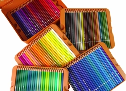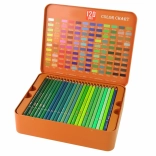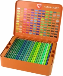 Setul nostru variat de creioane colorate include 120 de culori, păstrate într-o carcasă metalică solidă cu dimensiunile 23 cm x 19 cm x 6 cm, ceea ce facilitează organizarea și accesul rapid. Datorită celor cinci niveluri din organizer, îți poți aranja cu ușurință creioanele.