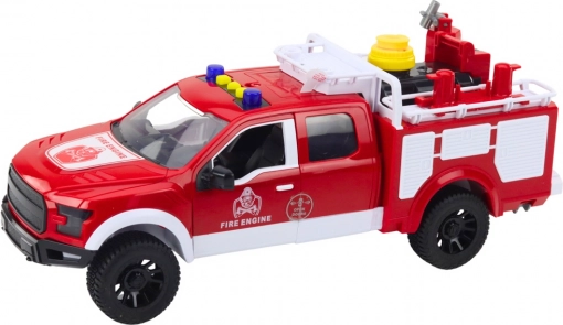 Mașina de pompieri este fabricată din plastic de înaltă calitate și include numeroase elemente funcționale. Pe acoperișul vehiculului se află un rezervor detașabil cu pompiță și furtun flexibil, care permite jocul de stingere a incendiilor prin pulverizarea apei. Astfel, copilul își poate imagina că este un adevărat pompier și poate „stinge” incendii imaginare acasă, în grădină sau pe terenul de joacă.
