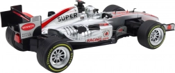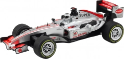 Bucură-te de distracție grozavă cu această mașină de curse RC spectaculoasă la scară 1:12. Designul aerodinamic inspirat de Formula 1 asigură un aspect credibil pe pista de curse și în afara ei. Cu telecomanda în formă de volan vei avea senzația că conduci chiar tu un bolid real.