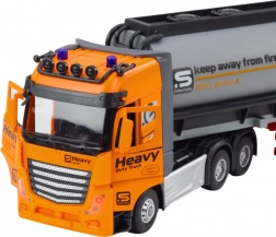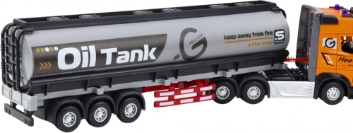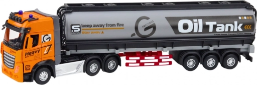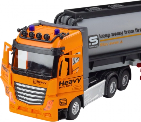 Cisterna este echipată cu uși de cabină care se deschid, efecte luminoase și sonore activate de telecomandă și autocolante de avertizare, care conferă senzația unui vehicul real pentru transportul de combustibili. Schema de culori portocaliu-negru, liniile dinamice și detaliile executate cu precizie atrag atenția și oferă vehiculului un caracter profesionist.