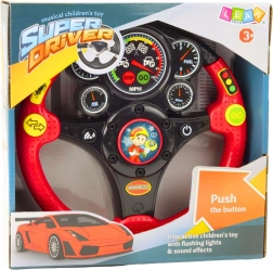Datorită funcției de imitare a sunetelor de claxon, semnalizare sau mers și a instrumentelor iluminate, copilul are posibilitatea unui joc interactiv și realist. Volanul include 7 butoane funcționale, fiecare activând efecte diferite – de la sunete de motor și lumini, până la melodii și vibrații. Butonul ON/OFF în formă de contact de pornire îi permite copilului să înceapă jocul ca și cum ar fi într-o mașină adevărată. Iluminarea instrumentelor și vibrațiile realiste amplifică senzația de prezență în cabina automobilului. Jucăria susține excelent dezvoltarea simțurilor, coordonarea mișcărilor și a vederii, precum și imaginația.
