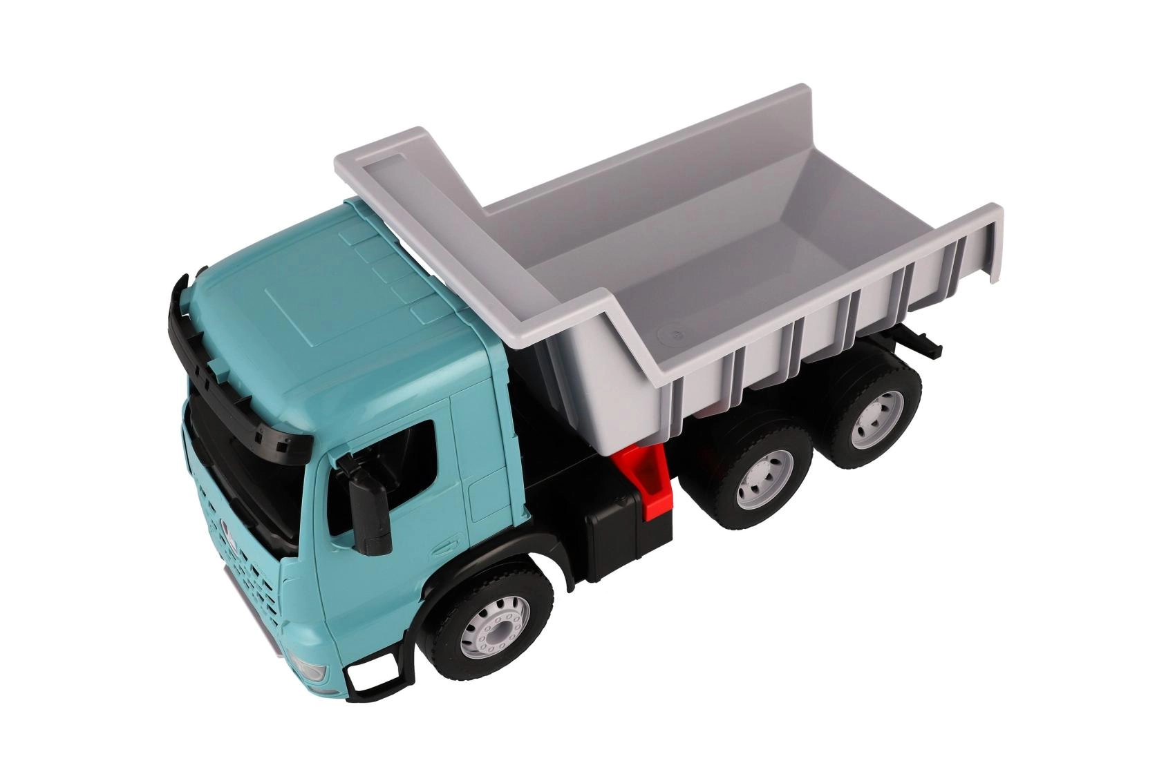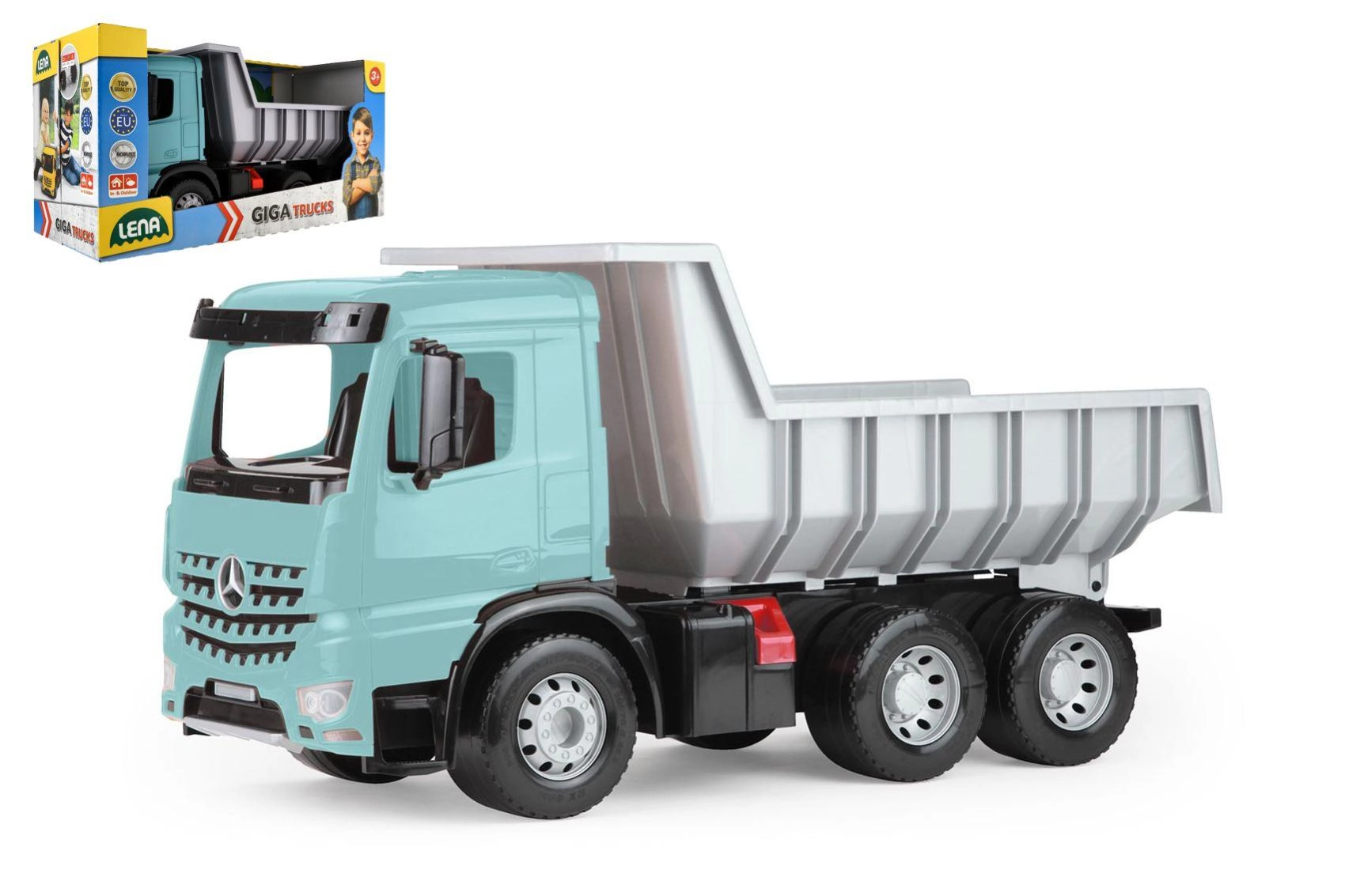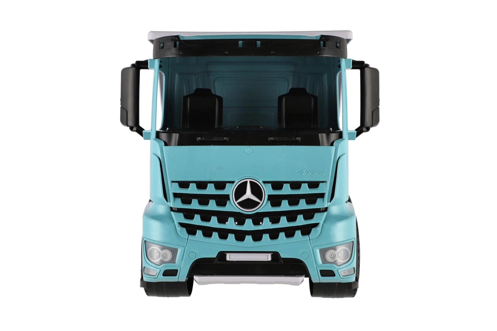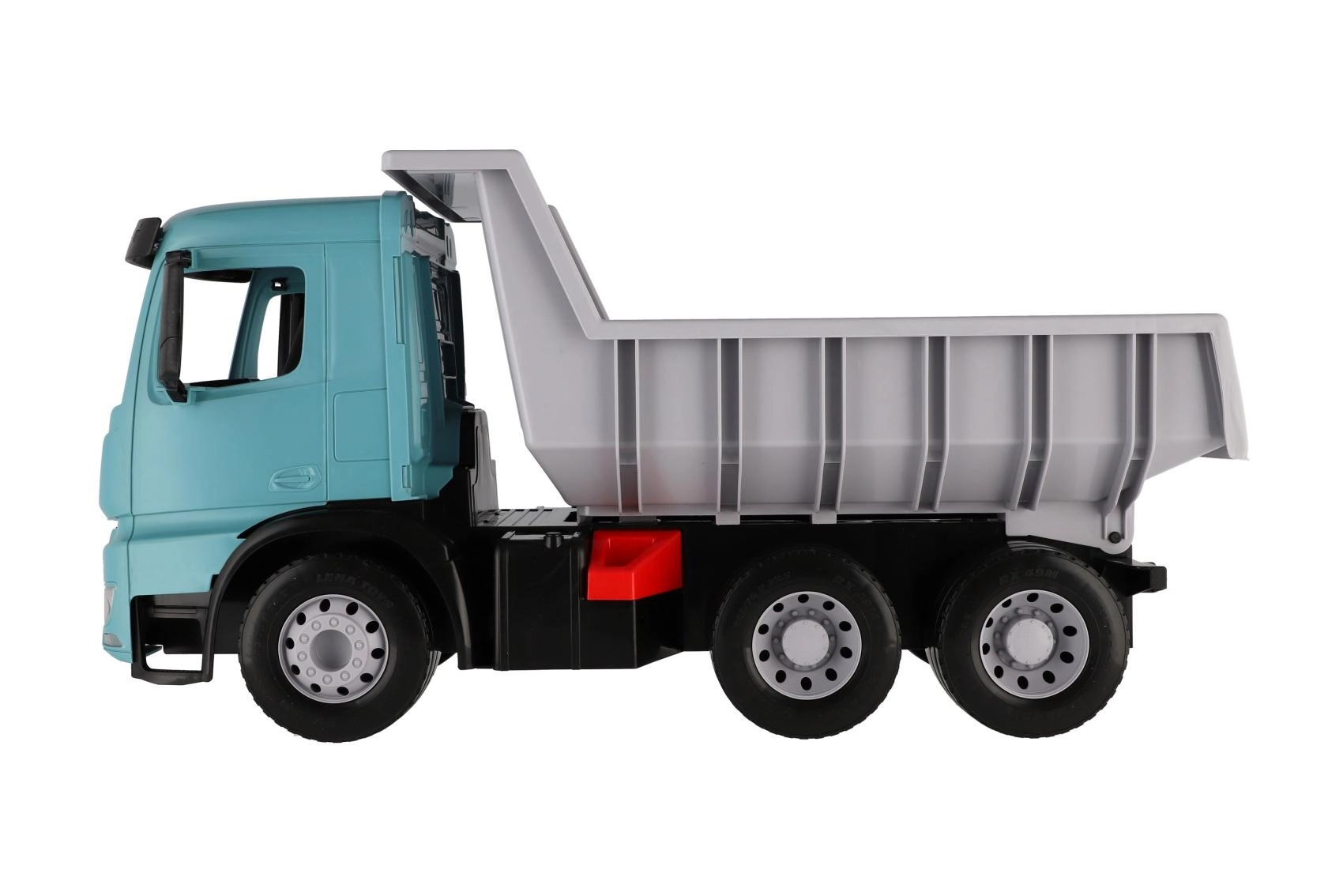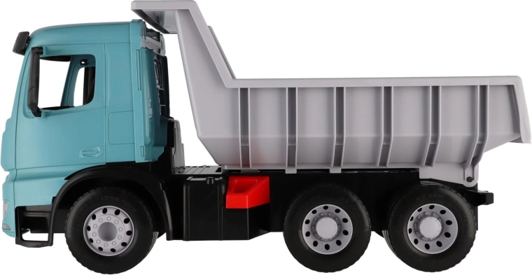 Autobasculantă mare din plastic pentru copii de la 3 ani, cu aspect realist al vehiculului MERCEDES-BENZ AROCS. Oferă o benă spațioasă cu siguranță împotriva basculării accidentale, construcție durabilă din plastic de calitate și un design modern turcoaz-gri. Ideală pentru joacă acasă și afară, pentru transportul nisipului, jucăriilor și al fanteziei.