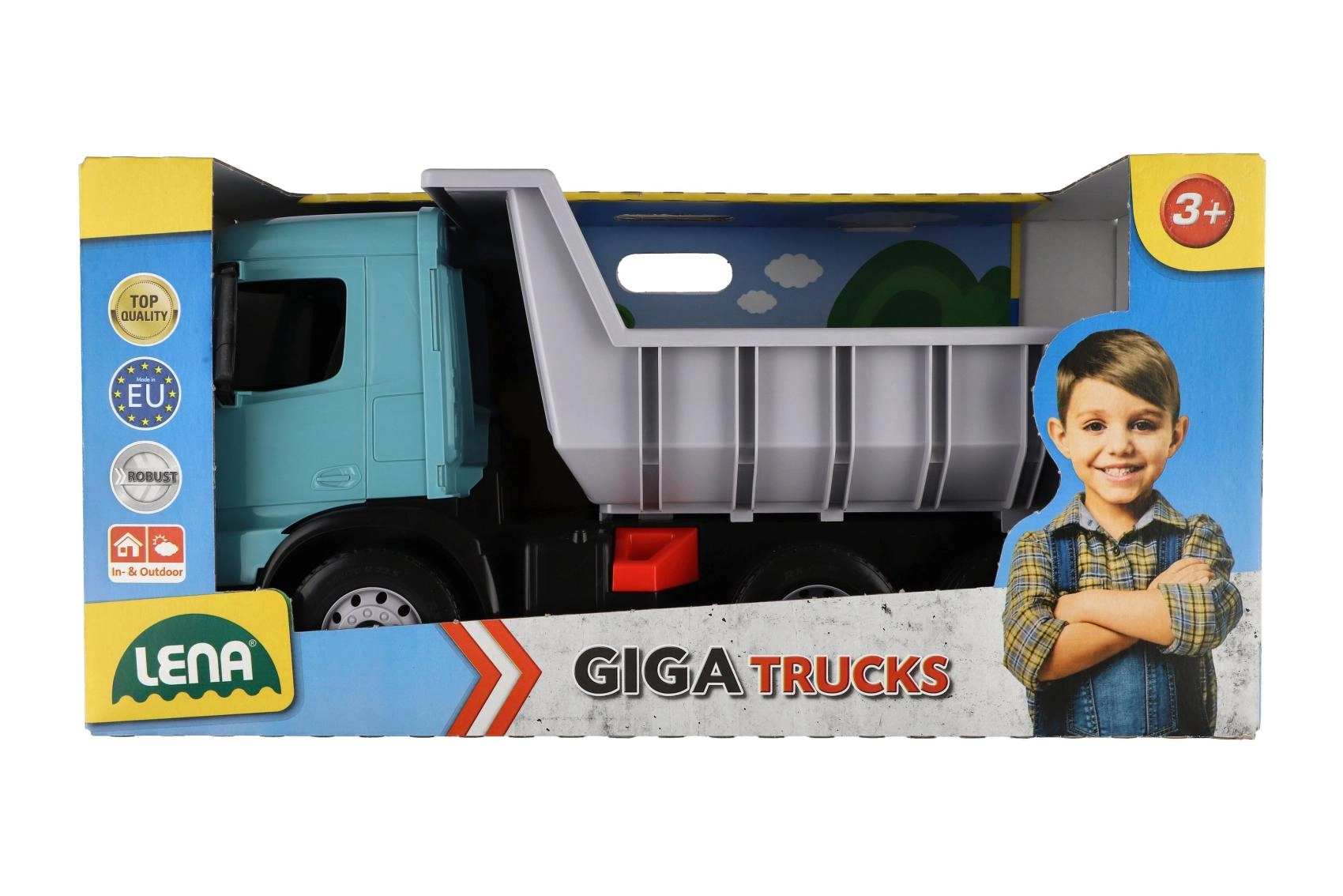 Această autobasculantă robustă din gama Giga Trucks este creată pentru micii constructori. Datorită benei mari rabatabile cu siguranță, transportă fără probleme încărcături mai mari și le descarcă în siguranță. Detaliile realiste ale cabinei AROCS susțin jocul creativ și tematic pe șantier, în grădină sau în camera copilului.