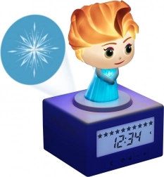 Ceas deşteptător de masă luminos cu figurina prinţesei Elsa din filmul Frozen. Include cablu USB pentru alimentare și proiecție pe perete pentru a adormi mai ușor.