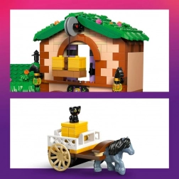 Descoperă farmecul vieții la țară alături de prietenii din orașul Heartlake. Setul îmbină joaca cu animale și un mediu bogat în detalii: grajd cu mansardă pentru dormit, salon primitor, iluminat exterior în formă de cai și o curte mare pentru îngrijirea poneilor. Scripetele funcțional pentru fân mută cu ușurință baloții în pod sau în căruță, astfel încât copiii pot inventa sarcini realiste de fermă.