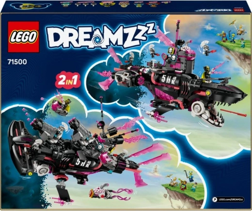 Intrați în lumea viselor cu setul de construcție plin de acțiune LEGO DREAMZzz Submarinul Rechinului Nocturn. Copiii pot reconstrui modelul în două moduri și se pot bucura de ore de creativitate, povești și bătălii incitante. Setul oferă transformarea rechinului într-un submarin sau într-o mașină de luptă în formă de pește-ciocan, avioane detașabile, tragere din fălci, cockpit care se deschide și închisoare la interior și un set bogat de minifigurine pentru joacă de rol fantastică.