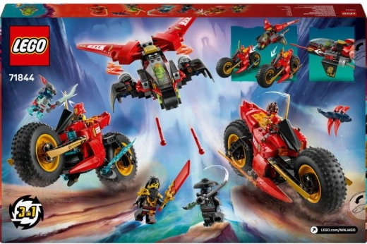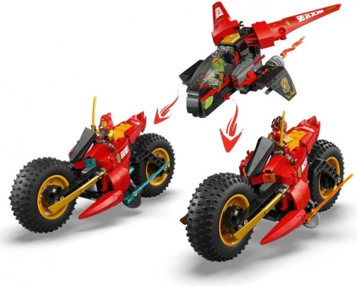 Acest set detaliat aduce acțiune palpitantă atât la sol, cât și în aer. Vehiculul ninja de luptă 3 în 1 se desparte ușor în trei mașini independente: motocicleta agilă a lui Kai, motocicleta înflăcărată a lui Wyldfyre și aerodinamicul avion cu reacție al lui Frak, cu două lansatoare pentru joc dinamic. Asamblarea și reconstrucția sunt intuitive și distractive.