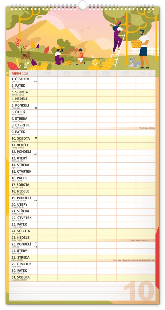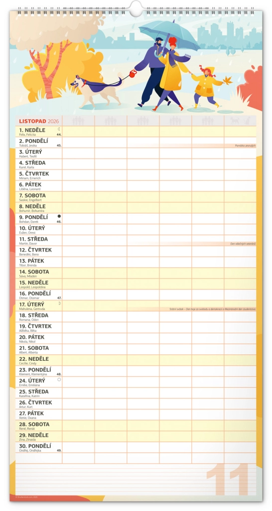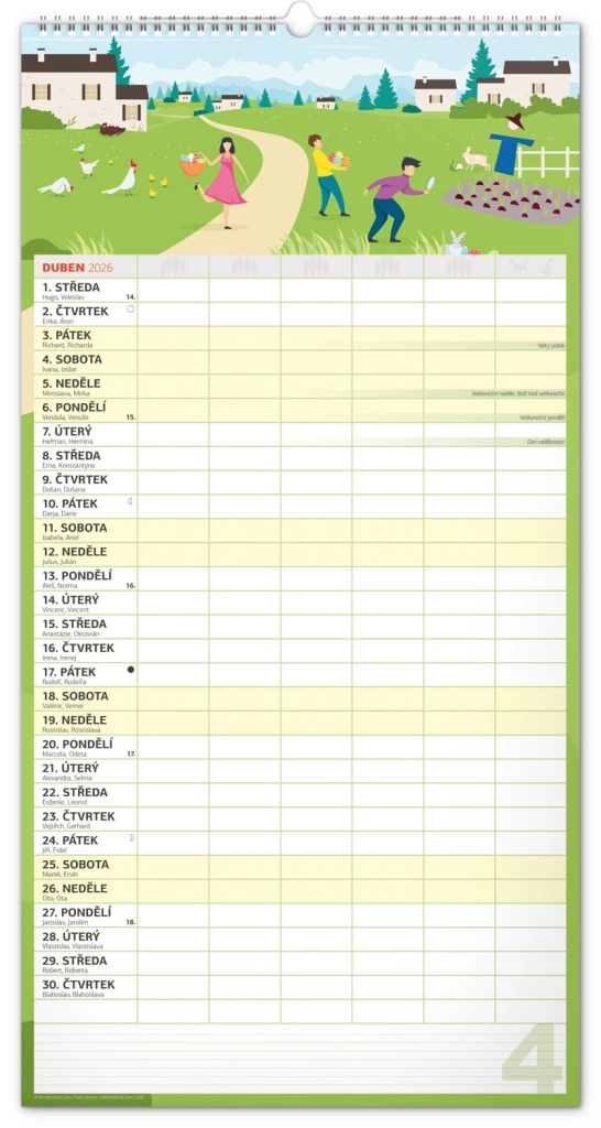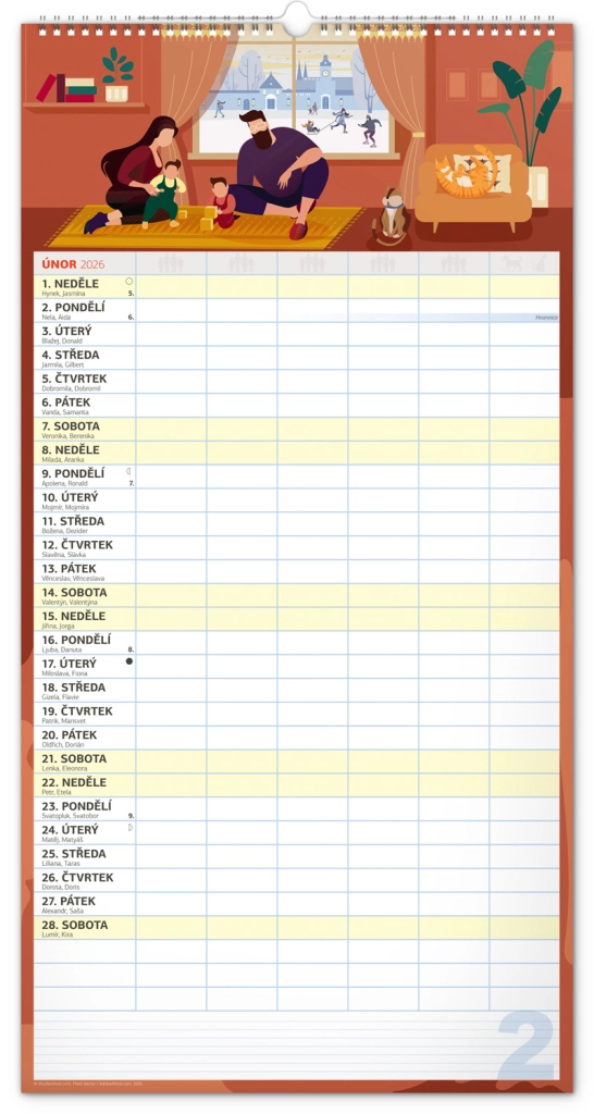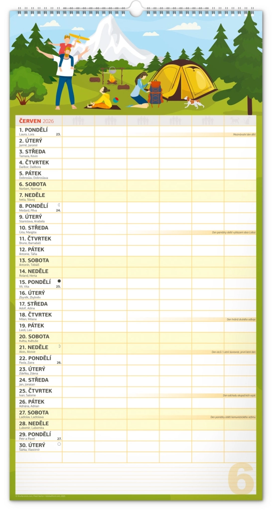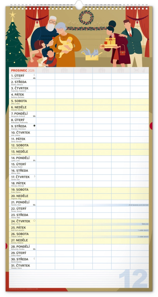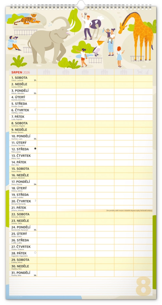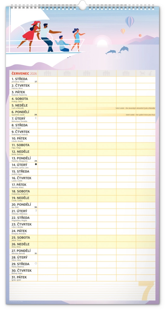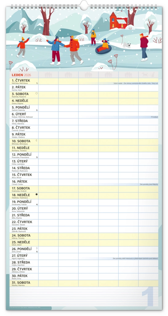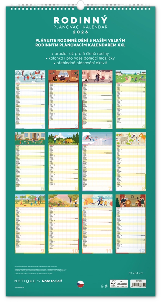 Acest calendar de perete planificator XXL pentru anul 2026 este ideal pentru familii numeroase. Datorită calendarului în limba cehă și planificatorului de activități pentru șase membri ai gospodăriei, rămâneți organizați și nu pierdeți nimic din vedere.