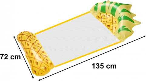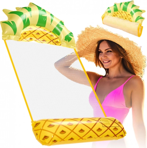 Bucură-te de vară cu salteaua noastră gonflabilă elegantă în formă de ananas, concepută pentru utilizare pe plajă sau în piscină. Această ambarcațiune multifuncțională combină funcțiile unui hamac, şezlong și fotoliu pentru confort maxim. Salteaua este disponibilă în culoarea alb cu nuanțe de galben și verde, care oferă un aspect proaspăt de vară.