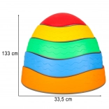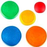 Acest set include cinci pietre de culori diferite: roșu cu ornamente, galben cu forme, portocaliu cu motive fructe, albastru cu litere și verde cu numere. Fiecare piatră este fabricată din poliuretan solid, care asigură durabilitate și o viață lungă.