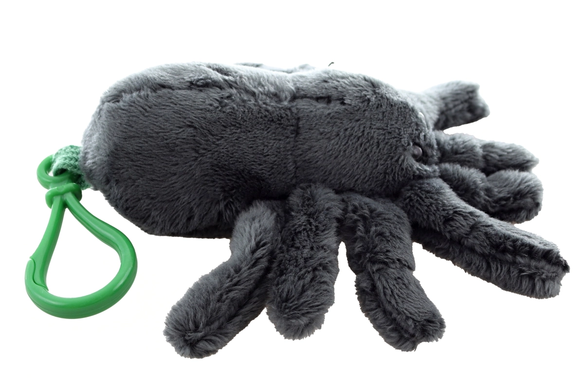 O tarantulă de pluș adorabilă pentru iubitorii de păianjeni, mici și mari. Ideală ca breloc pentru chei sau rucsac, fabricată din material moale cu un clip pentru o atașare ușoară.