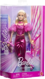 Descoperă lumea modei cu păpușa Barbie Deluxe model în ținută roz sclipitoare. Corsetul ingenios cu mâneci bufante, pantalonii lucioși și accesoriile asortate creează un look perfect coordonat, care atrage privirea din prima. Păpușa are păr blond lung, potrivit pentru pieptănare și styling, iar datorită articulațiilor adoptă cu ușurință poziții de podium.
