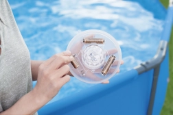 Această lampă LED modernă este ușor de utilizat: este suficient să introduceți trei baterii AA (nu sunt incluse în pachet), să plasați lampa pe suprafața apei și să apăsați butonul de deasupra. Nu aveți nevoie de cabluri sau de conectare la rețeaua electrică. Proiectată pentru a ilumina ușor o suprafață de apă cu lățimea de 2,43 m și adâncimea de 1,52 m. Se oprește automat după o oră de inactivitate.