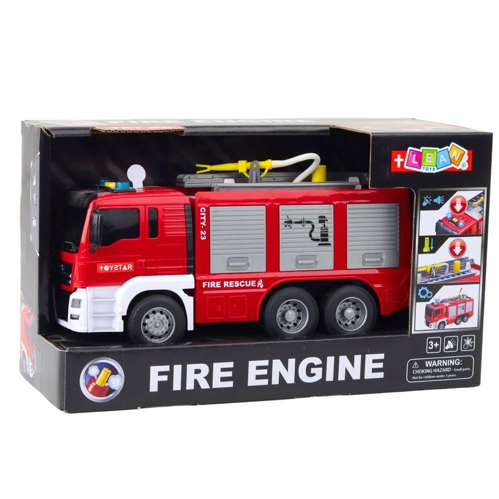 Jucăria este realizată din plastic durabil și este echipată cu roți de cauciuc, scară extensibilă și rotativă și efecte care se activează prin apăsarea unui buton.