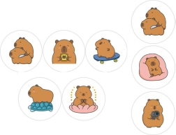 Faceți bucurii copiilor dvs. cu setul nostru de autocolante cu capibara. Setul oferă 500 de autocolante unice care prezintă capibare în diferite ipostaze, cum ar fi capibara pe skateboard, capibara meditând sau capibara cu un aparat foto. Cu un diametru de 2,5 cm, autocolantele sunt ideale pentru decorarea diferitelor suprafețe, fie că e vorba de laptopuri, agende sau ambalaje cadou.