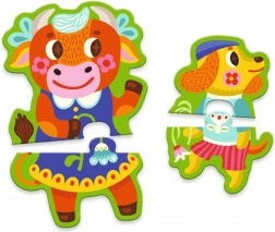 Puzzle-ul DJECO Mari și Mici la Fermă este o jucărie distractivă și educativă pentru cei mici. Pachetul conține opt figurine din două piese reprezentând animale domestice, pe care copiii le pot asambla cu ușurință datorită pieselor mari.