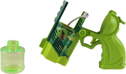 Animează orice petrecere pentru copii sau după-amiază în familie. Pistolul verde cu bule în stil dinozaur creează o mulțime de bule încă de la apăsarea trăgaciului și le completează cu un efect luminos care îi încântă pe mici și mari.