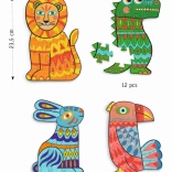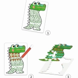 Descoperiți puzzle-ul creativ pe care copiii îl transformă mai întâi cu culori și modele după propria imaginație, iar abia apoi îl asamblează. Datorită contururilor clare ale animăluțelor, asamblarea este intuitivă și totodată plăcut provocatoare în funcție de culorile alese. Activitate ideală pentru dezvoltarea răbdării, imaginației și motricității fine.