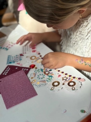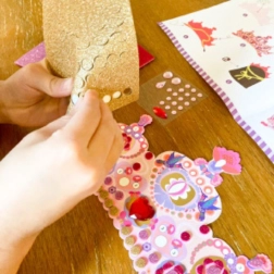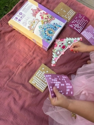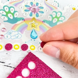 „Pietrele prețioase” autoadezive și elementele sclipitoare se aplică ușor, astfel încât chiar și cei mai mici pot crea designuri frumoase și originale fără mizerie.