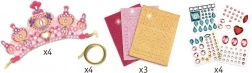 Transformați creația într-un joc fermecat. Setul DJECO oferă tot ce aveți nevoie pentru ca cei mici să își proiecteze și să își decoreze singuri patru coroane unice. Datorită pietricelelor autoadezive, sclipiciului și decorațiunilor, iau naștere piese originale care se leagă ușor cu panglica aurie și stau confortabil în păr.