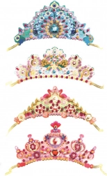 - Conținutul setului: 4 coroane din carton, set de decorațiuni sclipitoare autoadezive, panglici aurii