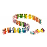 Bucurați-vă de ore de distracție cu domino-ul 3D din lemn Djeco, ideal pentru dezvoltarea abilităților motorii fine și a gândirii logice la copii. Acest domino include: