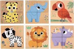 Cuburi de lemn Djeco Animale din junglă - o jucărie distractivă și educativă pentru micii exploratori. Permite copiilor să dezvolte logica și abilitățile motorii prin asamblarea cuburilor colorate.