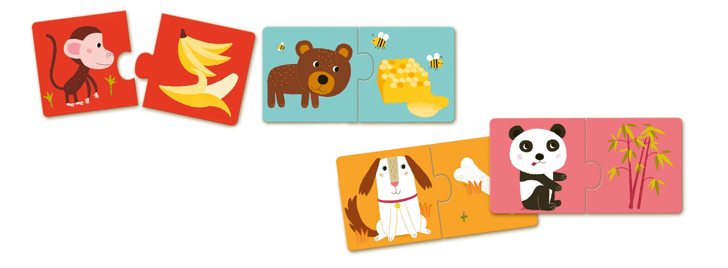 Fiecare pereche de puzzle-uri reunește o combinație corectă de alimente, permițându-le copiilor să învețe și să se distreze în același timp. Acest set variat și colorat este ideal pentru educație distractivă acasă sau la grădiniță.