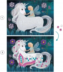 Descoperi83 distracbia creativ3 cu setul Djeco Mozaic3 Lumea magic3. Copiii, urme2nd numerele, plaseaz3 cu u5furin633 p3tr3e autocolante sclipitoare 5fi pietricele decorative pe suporturile preg3tite, ob63ine2nd astfel imagini minunat de str3lucitoare. Setul este perfect pentru o prim39 ini63iere een mozaicuri e253 nu necesit3 lipici sau foarfec3.