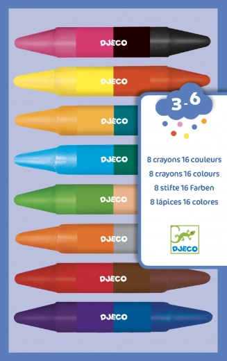Creioanele cerate ale mărcii DJECO oferă copiilor posibilități nelimitate de creare. Fiecare creion are două vârfuri diferite, care permit combinarea culorilor și experimentarea cu diverse tehnici de desen.