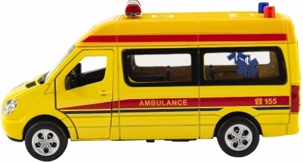 Această ambulanță, realizată cu atenție la detalii, combină un șasiu metalic solid cu accesorii din plastic rezistente și este ideală pentru jocuri creative. Datorită mecanismului pull-back, pornește fără telecomandă, iar ușile frontale și spate funcționale sporesc autenticitatea și interactivitatea.