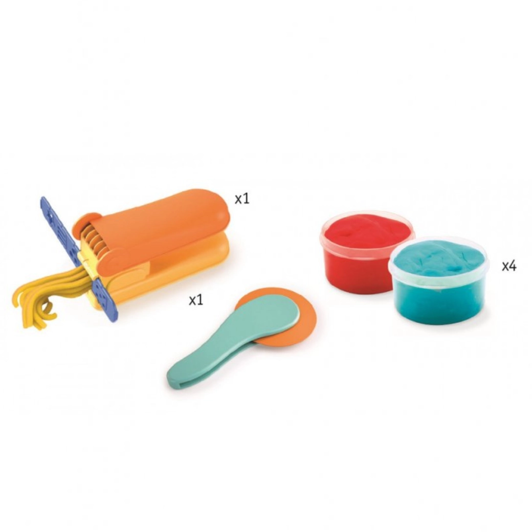 Descoperiți lumea creativității cu setul creativ de la DJECO. Acest set cu plastilină permite copiilor să modeleze și să imprime diverse coafuri, ceea ce le susține imaginația și abilitățile motorii fine.