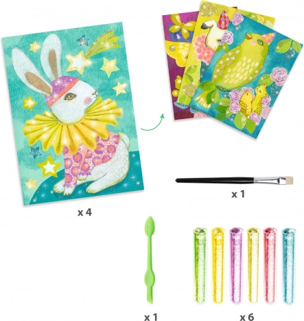 Cu acest set de la marca DJECO, le oferiți copiilor ore de distracție și oportunitatea de a învăța răbdare și precizie în colorarea animalelor de carnaval cu nisip.