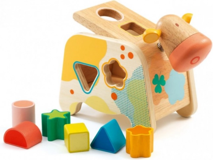 Jucărie de introdus DJECO Văcuța este un instrument distractiv și educativ pentru cei mai mici copii. Ajută la dezvoltarea abilităților motorii fine și recunoașterea formelor și culorilor.