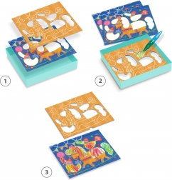 - Setul include: autocolante, culori și alte materiale creatoare.