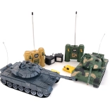 - 2× tanc RC, 2× telecomandă, baterii reîncărcabile 2× 4,8 V AA pentru tancuri, 2× baterie de 9 V pentru telecomenzi